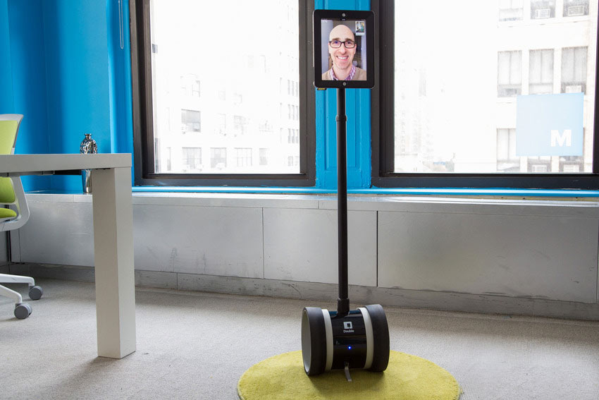 Powered by robots created by the team at Double Robotics, PartiBot (shown below) consists of an iPad screen connected to a remote controllable set of wheels.